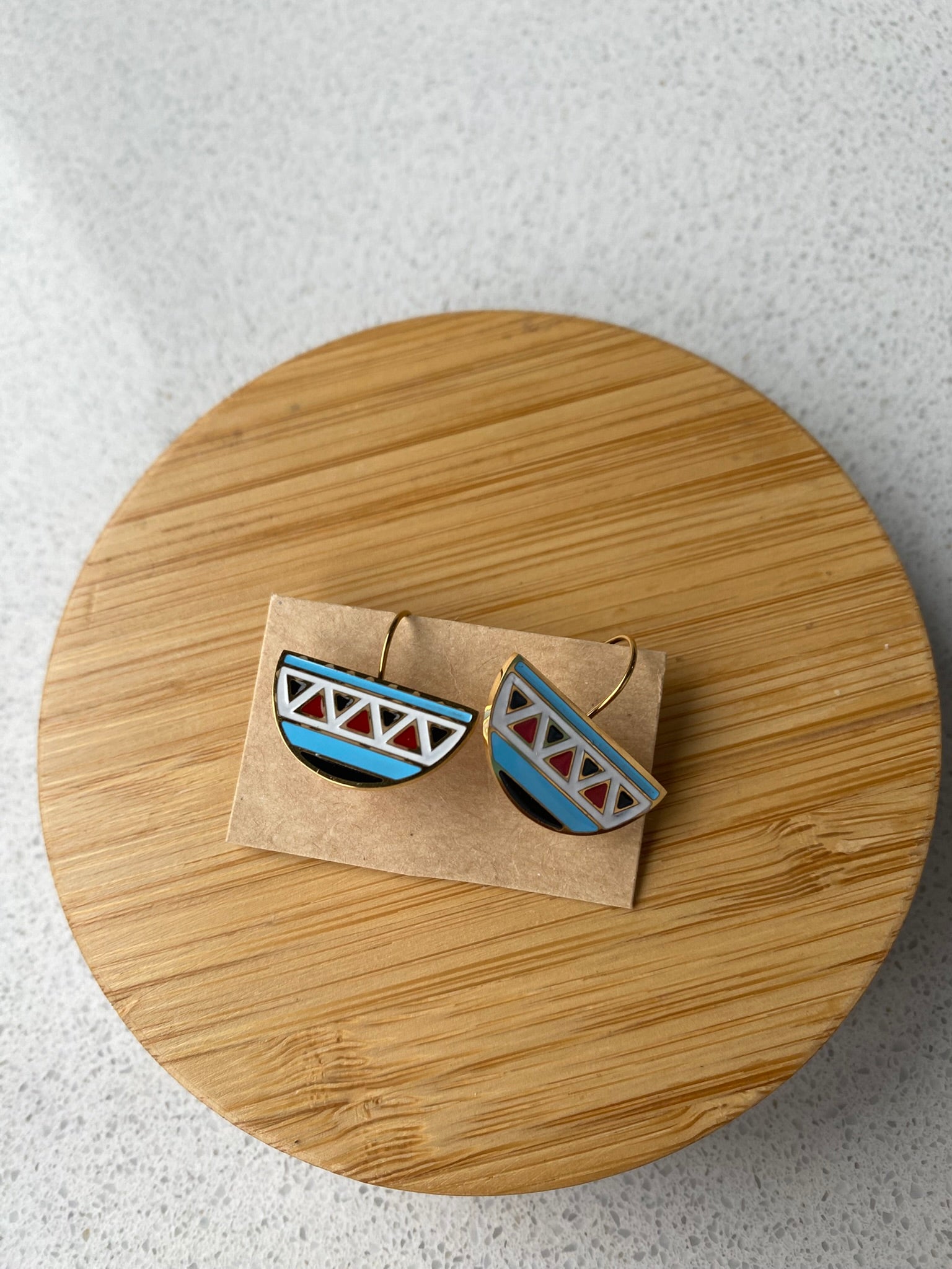 Estos aretes no son solo un accesorio, son una declaración de estilo. Con su diseño moderno, geométrico y vibrante, añadirán un toque de originalidad y color a cualquier atuendo.