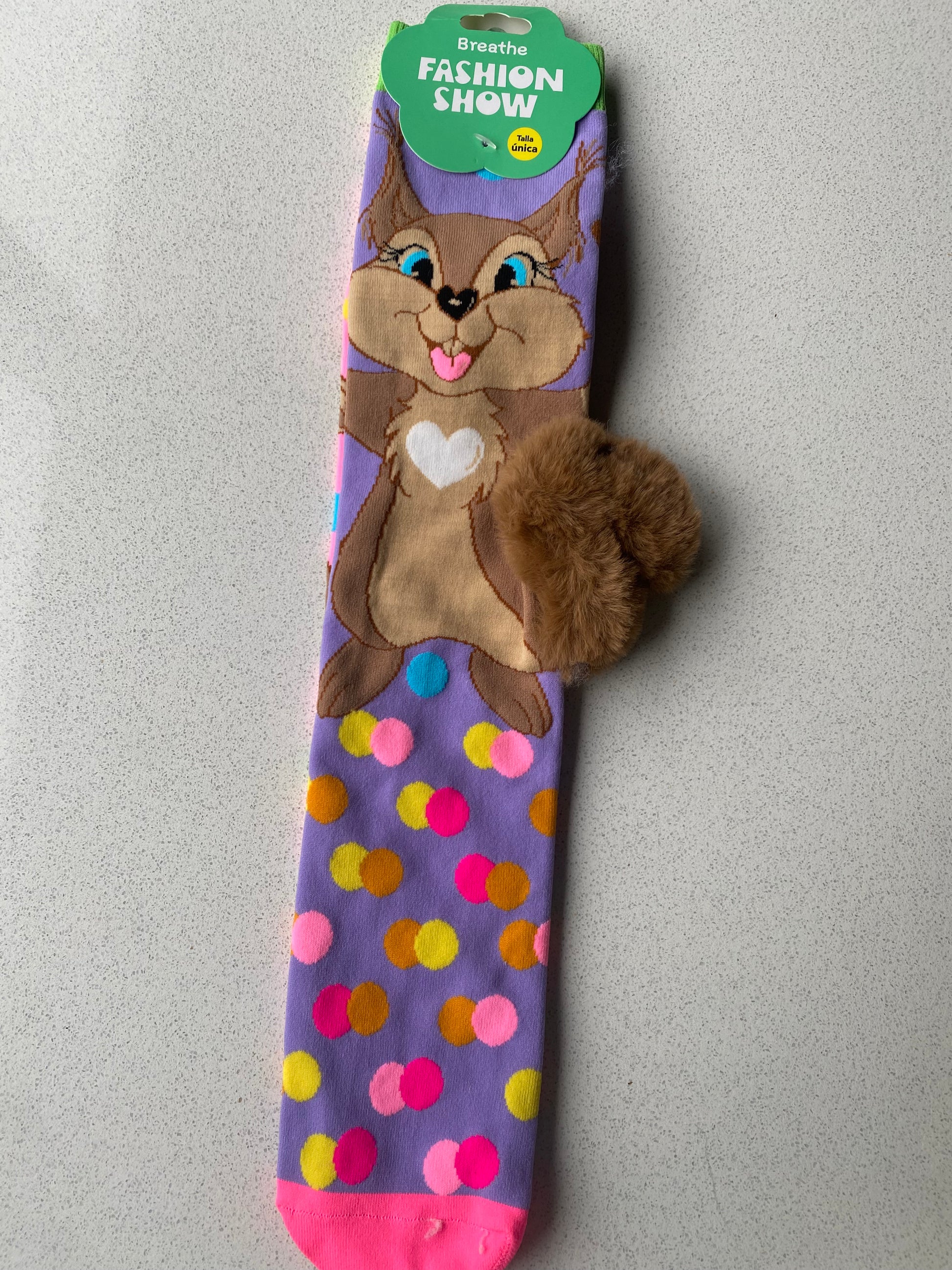 Lleva la diversión a tus pies con estos encantadores calcetines de ardilla.