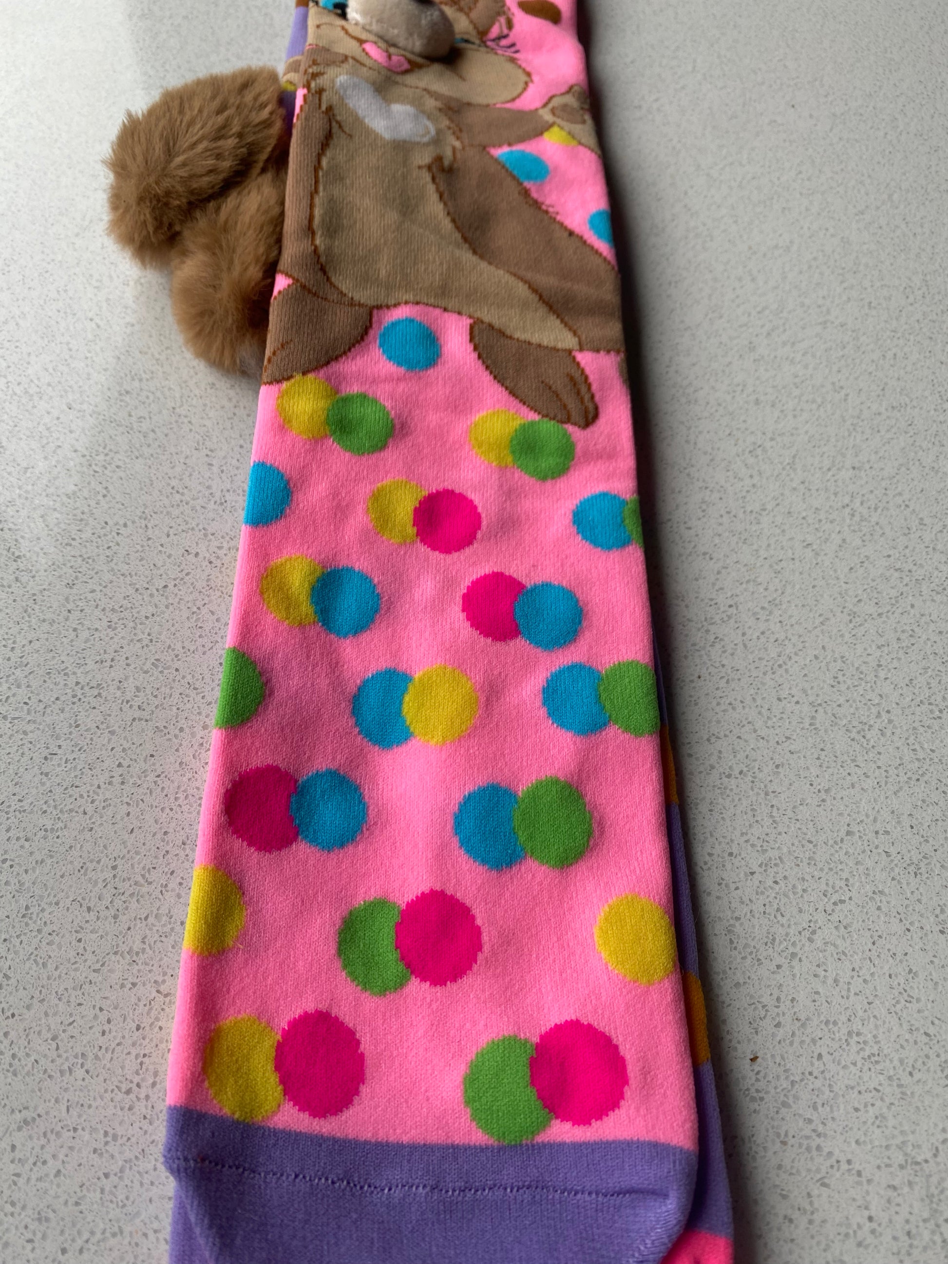 Estos calcetines de talla única son perfectos para quienes buscan un accesorio que combine comodidad, estilo y mucha ternura. Ideales para darle un giro divertido a cualquier atuendo.