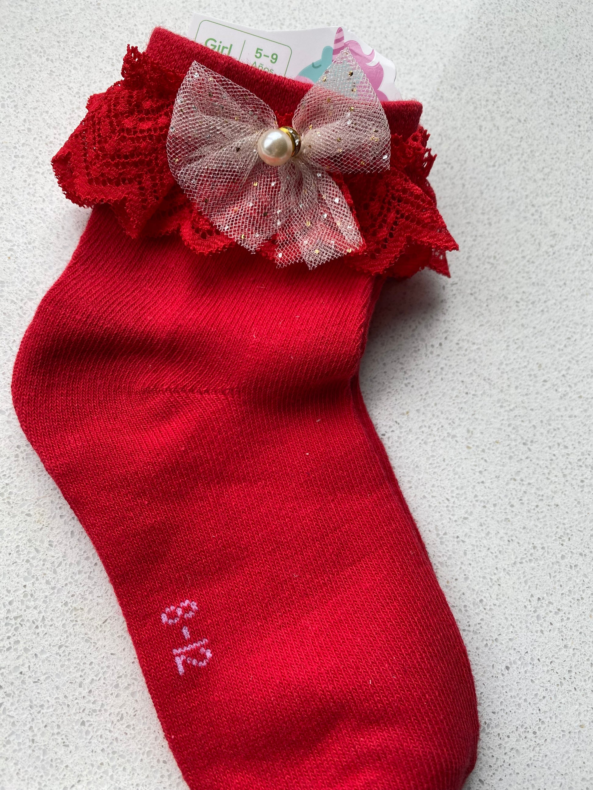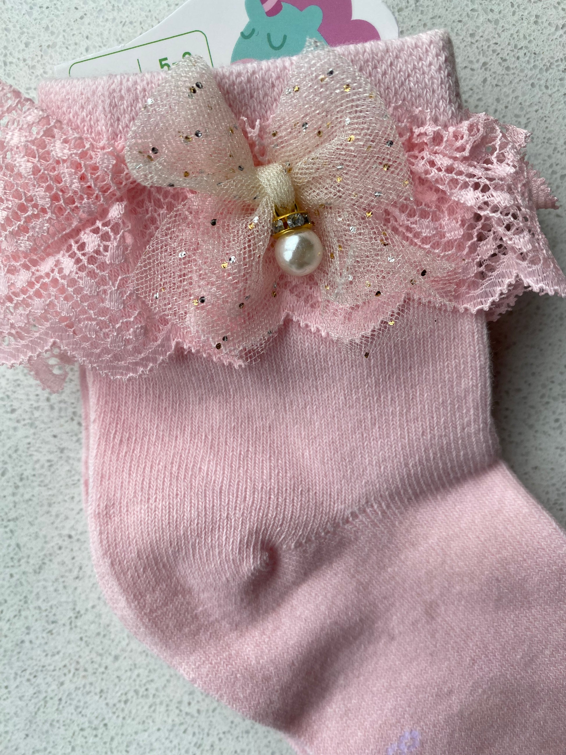 Diseñados para combinar y fantasía , estos calcetines están adornados con un delicado encaje, un hermoso lazo brillante con una perla o también con una flor tejida... que los hace lucir como sacados de un cuento de hadas.